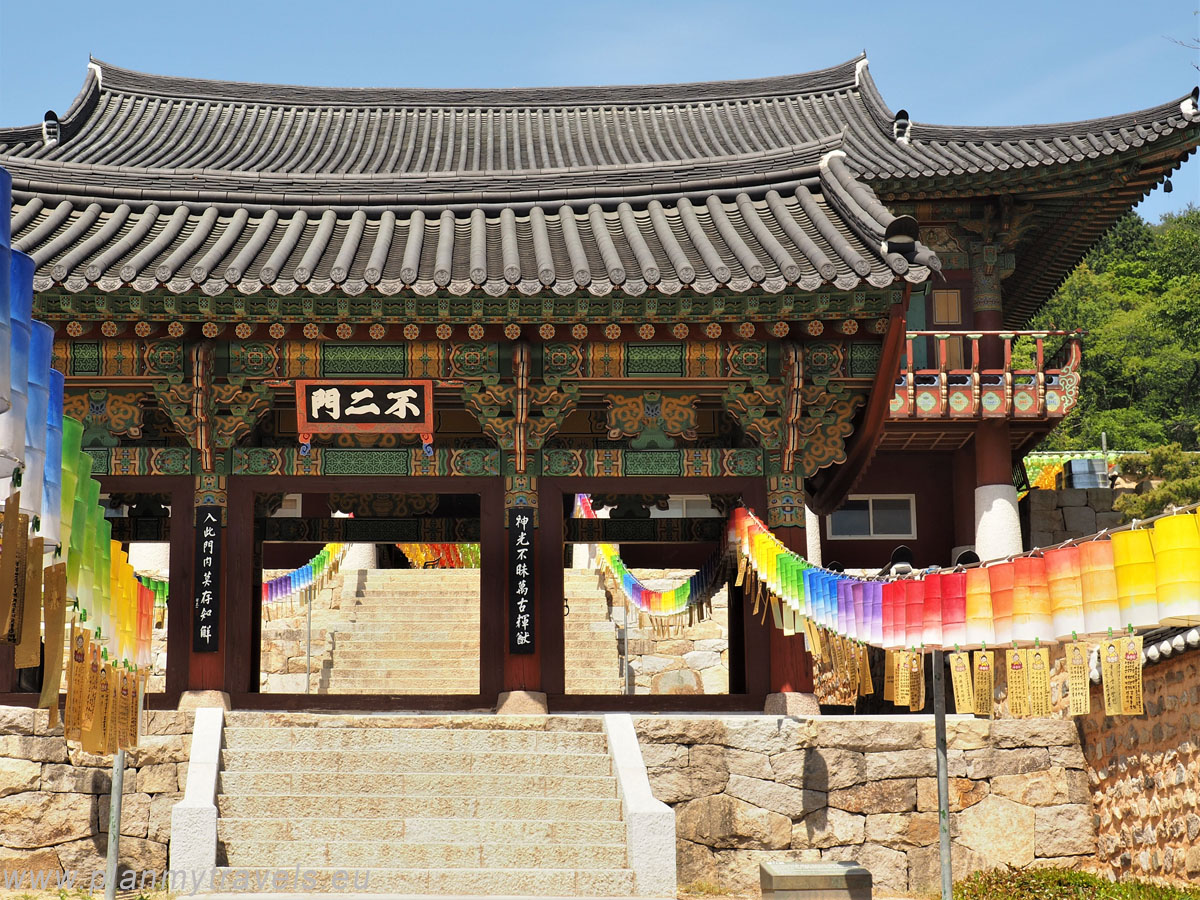 Above the main gate leading to the temple buildings is an inscription: “The most beautiful temple in Korea”. Before you cross it, you know this inscription was placed there for a good reason. It can’t be denied that the place where the temple was built over 740 years ago still makes an impression. Tourists come here at dawn to see the temple bathed in the first rays of the rising sun. Buddhists also believe that if worship is offered in the morning, it is a divine place that receives good fortune in the evening.