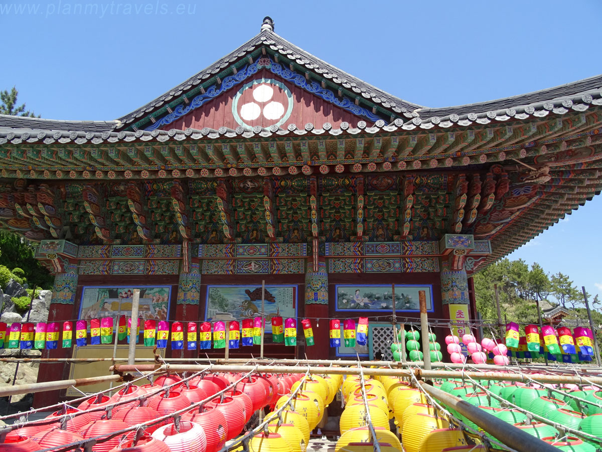 There are many Buddhist temples in Busan, but two of them deserve special attention. Both surprised me with their beautiful location and unusual architecture. The Lantern Festival and preparations for the Buddha’s birthday celebrations were underway in South Korea. On this occasion, all temples in the country were covered with colourful lantern “carpets”. Both the lanterns’ colour and shape matter and can vary from temple to temple. For example, white lanterns are dedicated to the memory of those who have passed away. Lanterns in the shape of lotus flowers mean the removal of ignorance in the light of awakening.