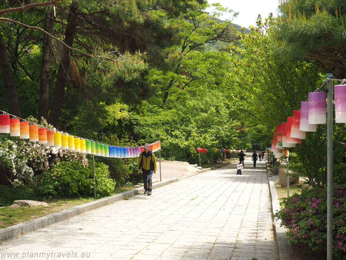 For this reason, in my pictures of all Korean temples, you can see mostly colourful lanterns and almost no buildings or monuments. We were lucky because temples decorated this way are only seen for a few days a year. The sight of thousands of lanterns hanging from the roof makes a powerful impression. When they are additionally turned on and flashing after dark, the magic begins.