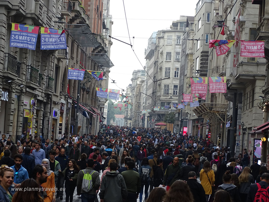 The Istiklal Caddesi is very crowded. The crowd of people is so dense that you can’t see the oncoming tram, whose tracks run along the middle of the road. To be able to pass, the tram driver is ringing all the time, otherwise, no one would get out of his way. You must visit it!