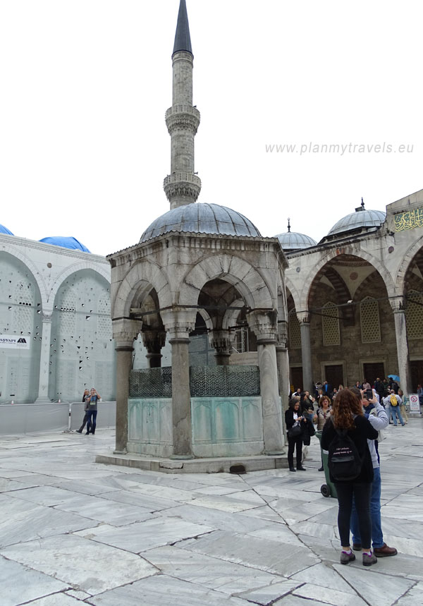 The significance of the new mosque was evidenced by the fact that it was located near the Topkapi Palace. At that time Palace was the main seat of the Sultan. Along with the mosque, a complex of public buildings was created: a Muslim school, merchants’ halls, soup kitchens for the poor, a hospital, a mausoleum and a caravanserai.