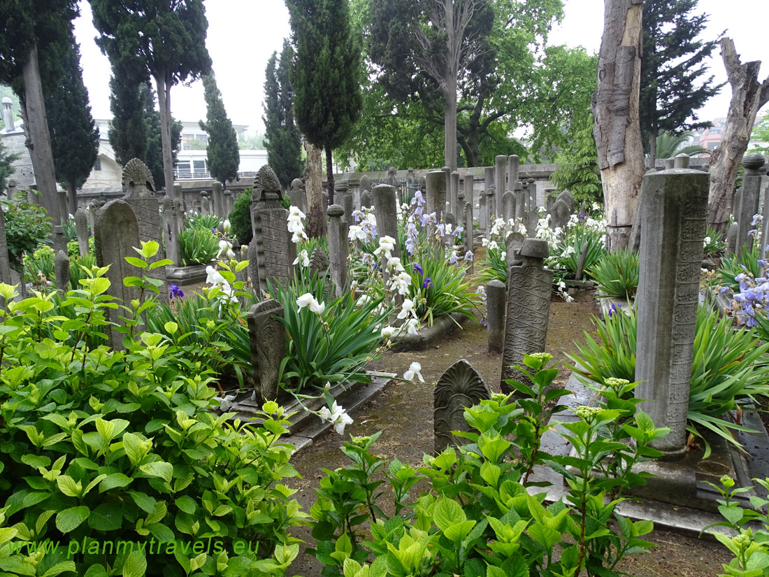 In the garden behind the mosque, there is a little cemetery, covered with iris flowers. There you can find two beautiful mausoleums.