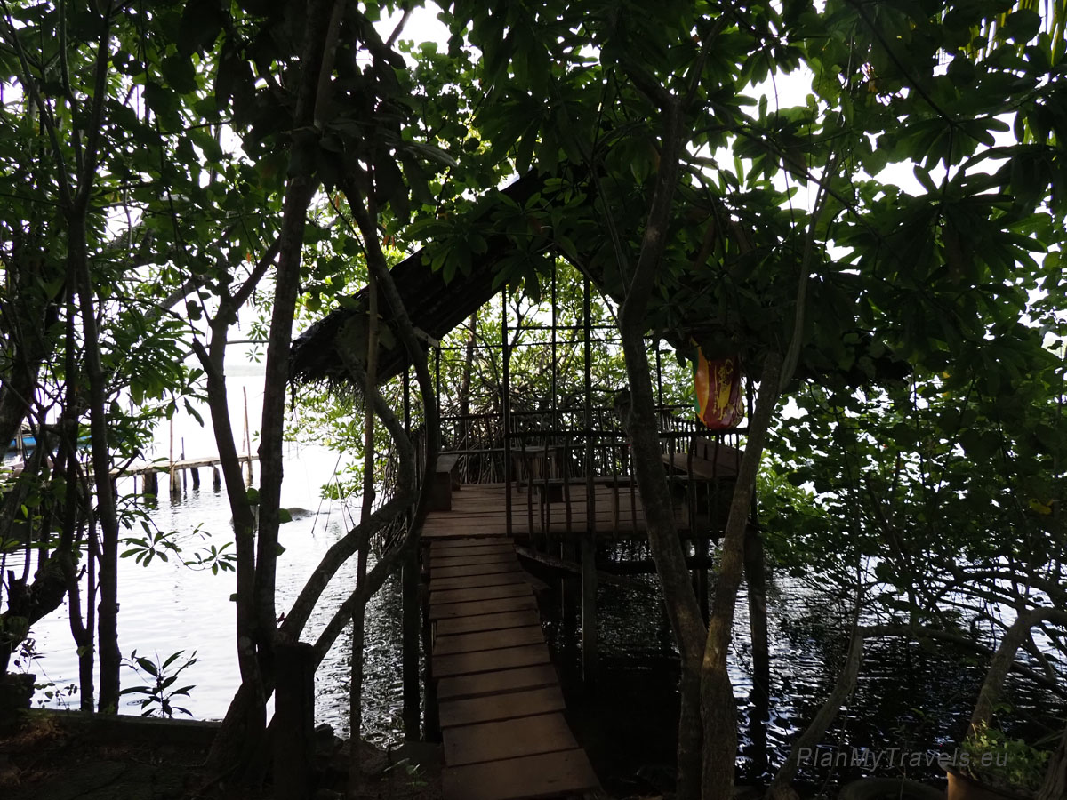 Then, we boarded a traditional boat and sailed across a small lake surrounded by partially submerged trees.