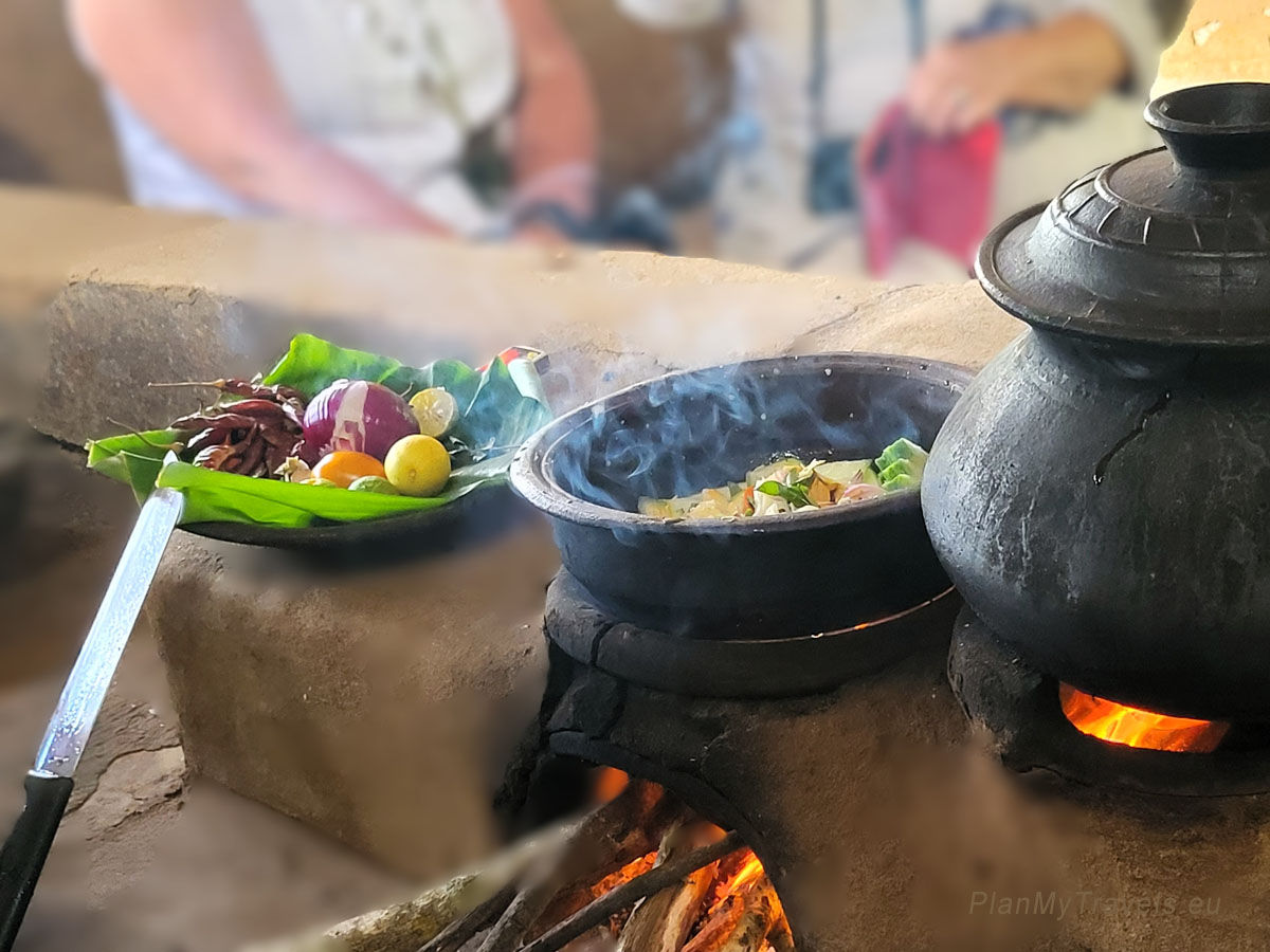 After this relaxing journey, we arrived at the village, where a local family welcomed us. The hostess showed us how to traditionally peel a coconut, extract its milk, and use it for cooking. We prepared a meal using fresh local vegetables and spices before enjoying homemade Sri Lankan cuisine flavours.