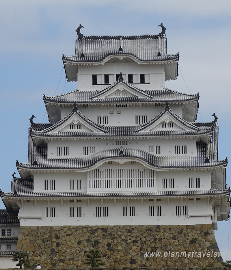 On the UNESCO side, we can find the following description: “Himeji-jo is the finest surviving example of early 17th-century Japanese castle architecture, comprising 83 buildings with highly developed systems of defence and ingenious protection devices dating from the beginning of the Shogun period. It is a masterpiece of wood construction, combining function with aesthetic appeal, both in its elegant appearance unified by the white plastered earthen walls and in the subtle relationships between the building masses and the multiple roof layers.”