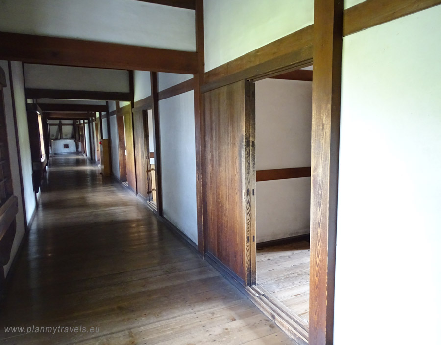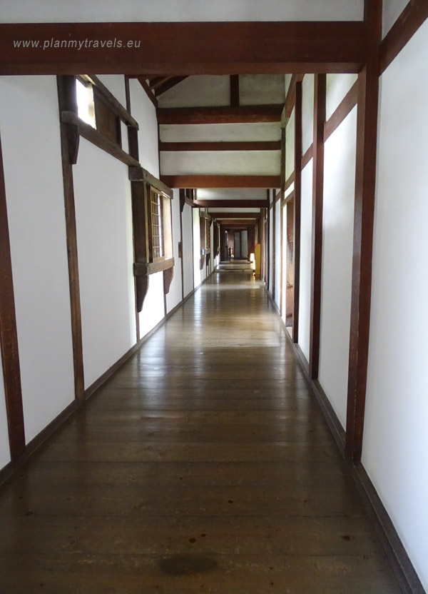 From the top floors of the castle, you can enjoy beautiful views of the gardens, city walls, moats, Himeji city, and the mountains. Also, it is worth mentioning that through the window, you can see a pair of two-meter tall sculptures, showing shahi (half fish, half tiger) – protecting the roof from fire. It is also worth looking at the vast cypress pillars that support roof construction, as the base of their diameter is 95 cm, and the oldest specimen is 780 years old. On each floor, there are collections of armour, swords and firearms. For English-speaking visitors, there are also a few multilingual signs explaining architectural features and renovation efforts made over the years to preserve the structure.