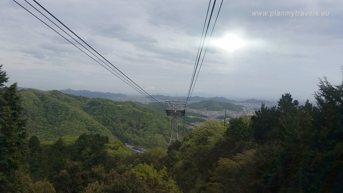 The journey takes less than 4 minutes, and the ropeway stops at 370 m above sea level. The views through the gondola windows are breathtaking, as when there is nice weather, you can see not only the nearby city of Himeji but also the slightly further city of Kobe and—at the very far end—the city of Osaka.
