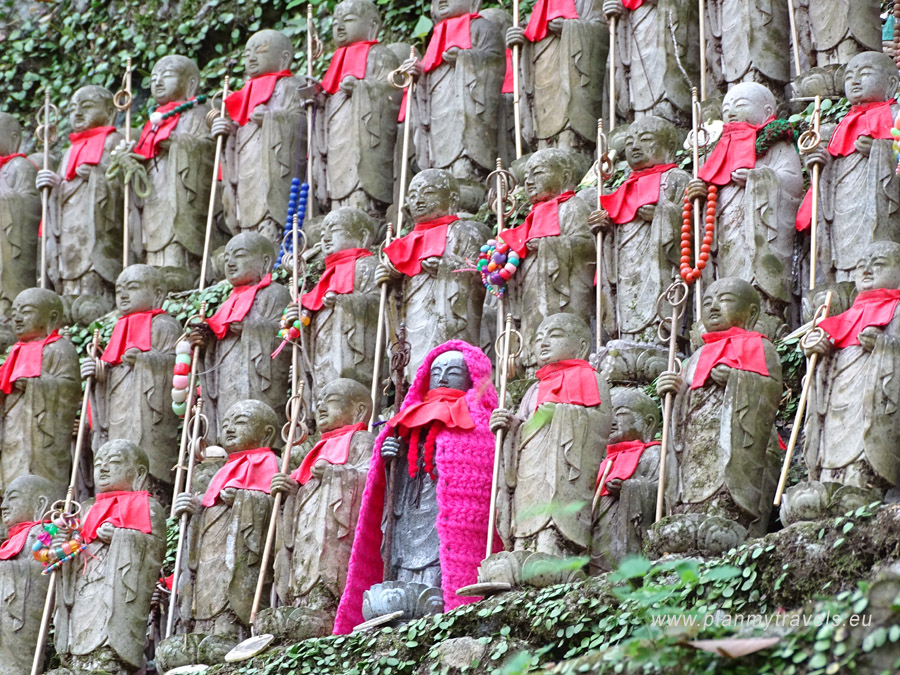 In the forest, hundreds of small Jizo Bodhisattva figures also take care of the peace of mind of the unborn children.
