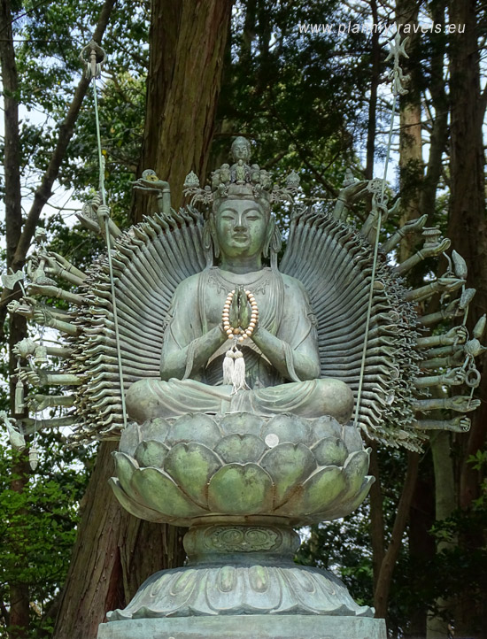 On the way, you will spot 33 sculptures of the Kannon Goddess, where the faithful can leave donations. After passing the main gate, you must walk for another 10-15 minutes to reach the Maniden building – a beautiful wooden temple built on a hillside.
