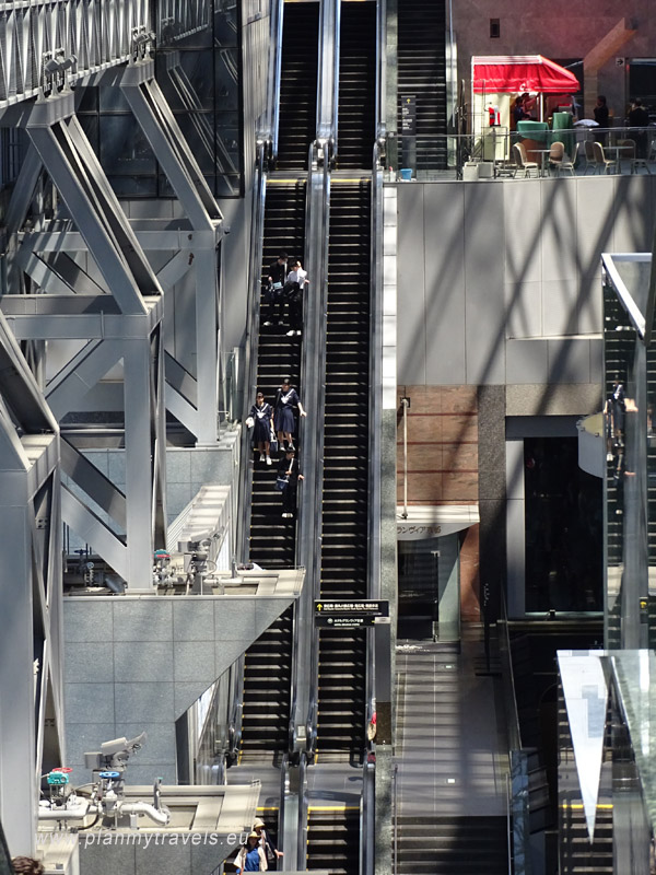 You can get through almost vertical escalators at the top of the main hall, which will take you up to the 12th floor. A garden and a glazed wall at the top of the roof offer a great view of the city. On one side of the atrium is a luxury hotel; on the other, there is a shopping centre and numerous restaurants. Strolling through the tunnel (“Skyway tunnel”) at the height of the 11th floor is a pleasant reward for this tour. Glazed walls in the tunnel guarantee the best views of the city and the opportunity to look closely at the “Kyoto Tower”.