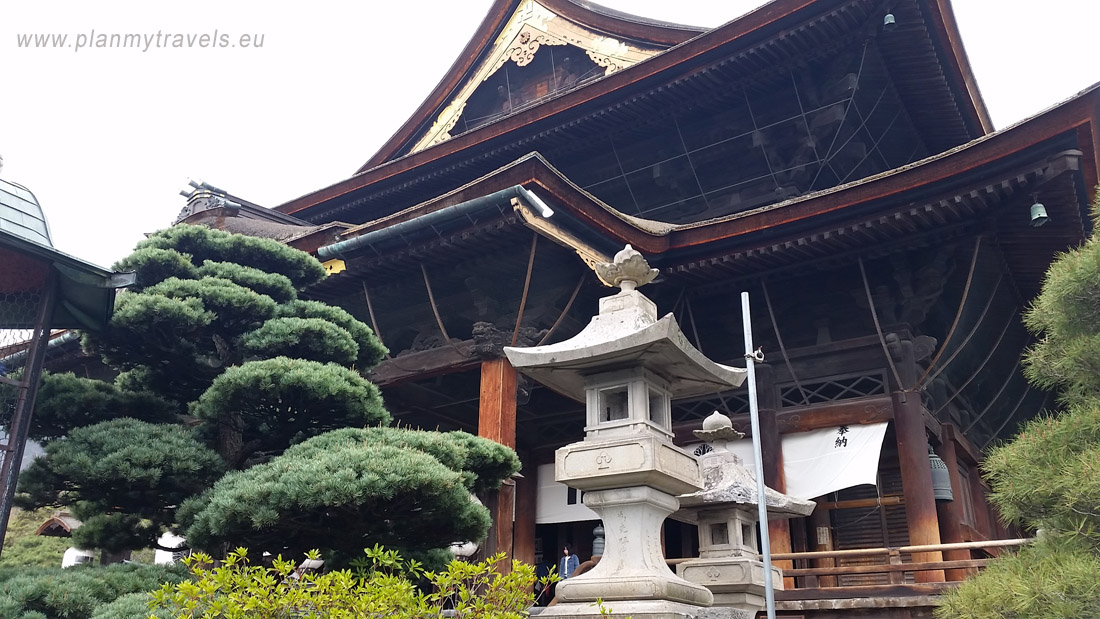From Tokyo to Nagano, you can take the Hokuriku Shinkansen train (about 1h 40 min). From Nagano Station, the temple can be reached by bus (about 15 minutes) or on foot (about 30 minutes walk). The walk can be a pleasant experience because you can visit many shops and get nice souvenirs. To get to the temple, you will walk through Nakamise-dori Street, which has a commercial atmosphere. There are numerous temples (Shukubo) where pilgrims can stay for a night, abbots’ residences, shops, and food stalls.