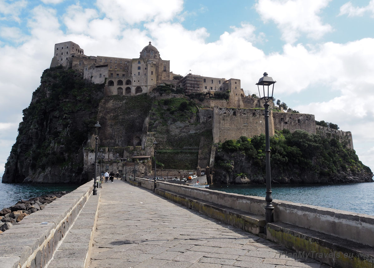 - Ischia Port – Aragonese Castle. Approximately 2.5 km, 30 minutes on foot, or a short taxi ride (5-10 minutes). You can also take bus number 7 (approx.. 15 minutes).