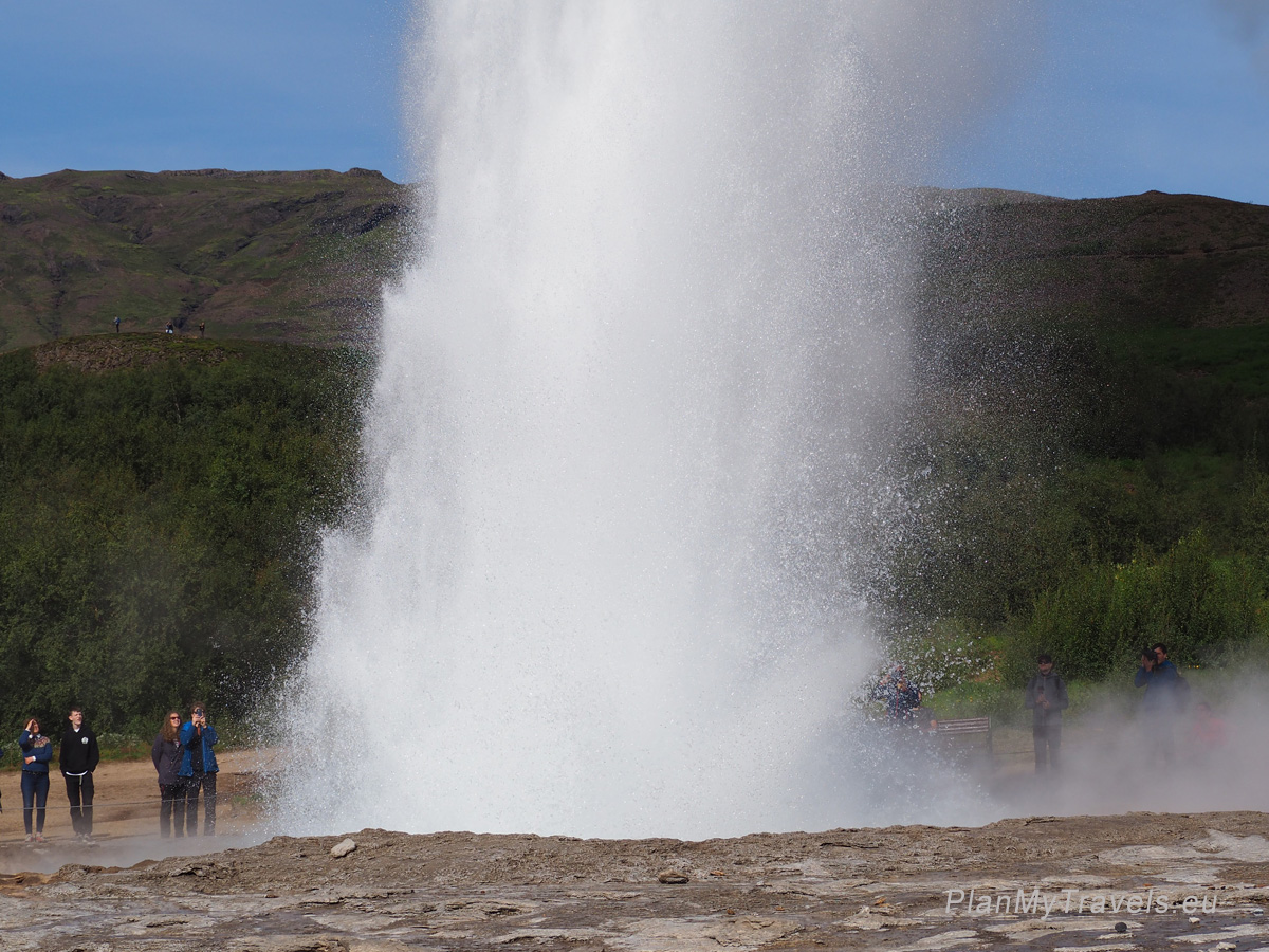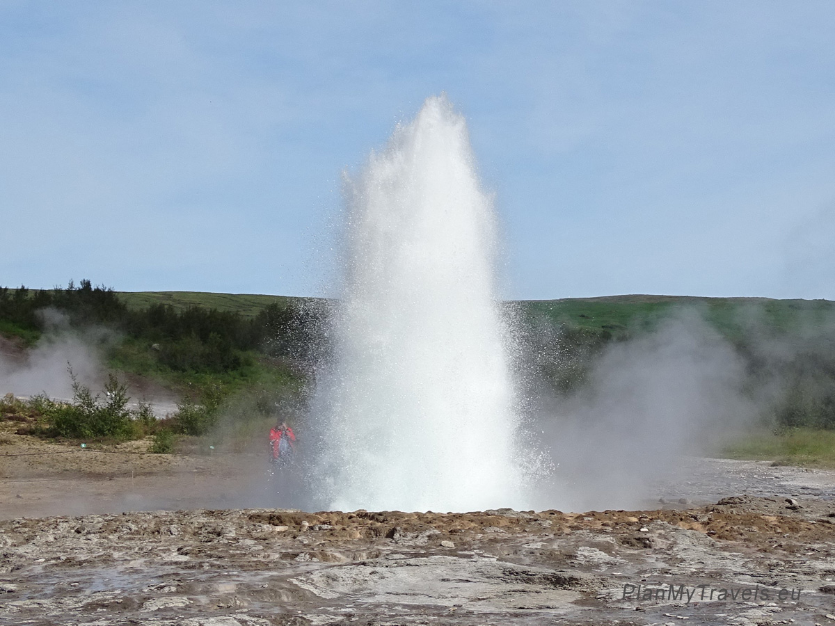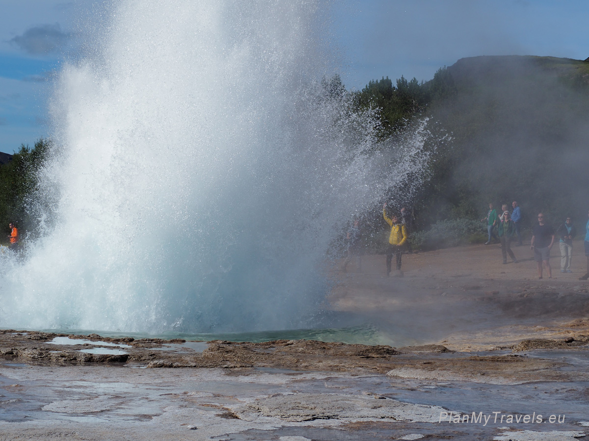 Zainteresowanie turystów przeniosło się obok, gdzie znajduje się młodszy i bardzo aktywny gejzer – Stokkur. Wybucha on w odstępach czasu co 8-10 minut i potrafi wyrzucić wodę na wysokość między 25 a 30 metrów. Jest zatem na co popatrzeć i nie trzeba długo czekać na wspaniałe efekty.