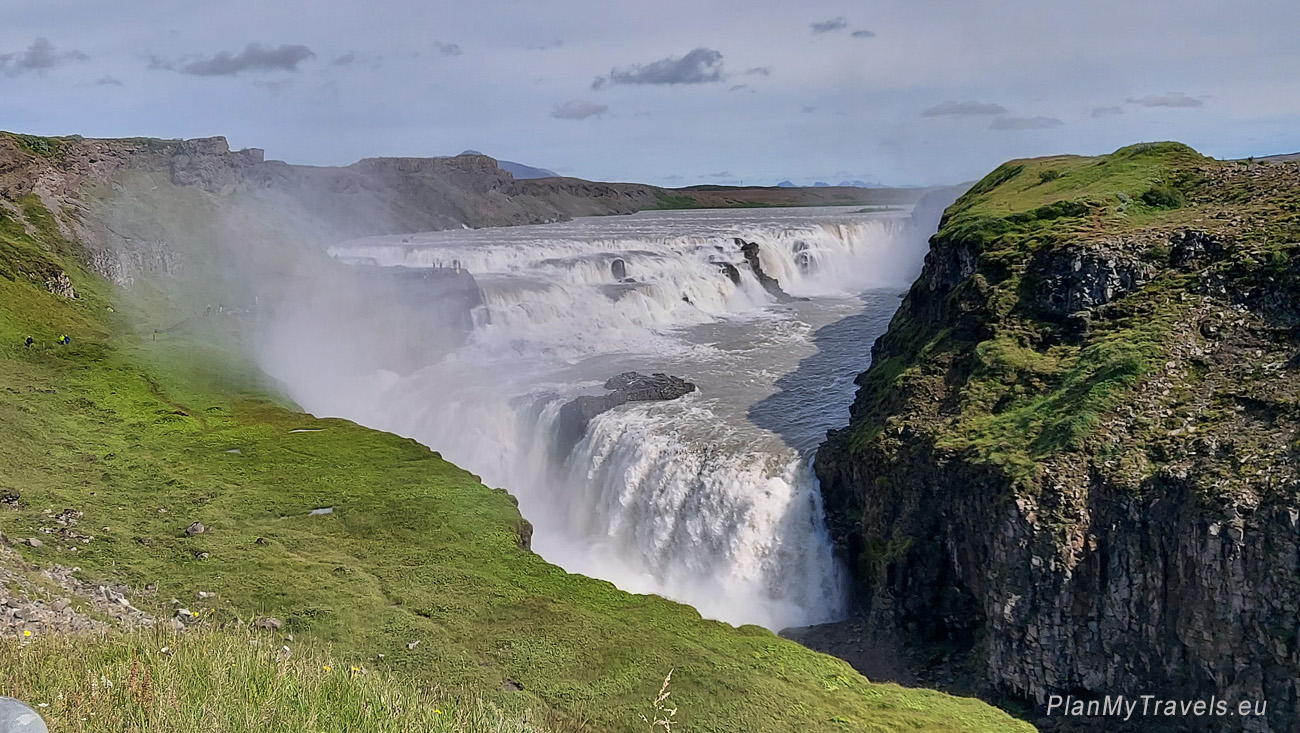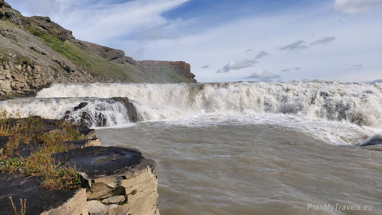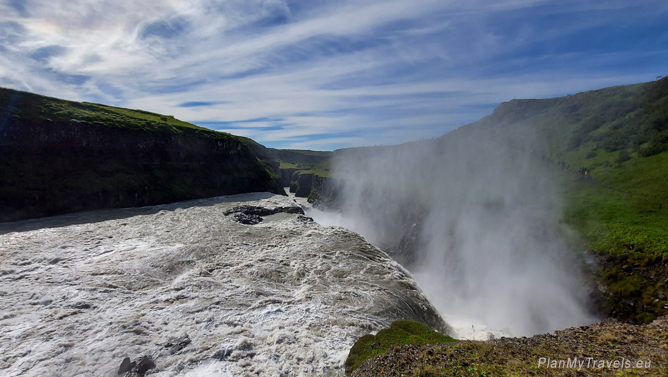 Składa się z dwóch kaskad, gdzie wyższa ma 21 metrów wysokości a niższa 11 metrów. Woda przepływa przez Gullfoss ze średnią prędkością 140 metrów sześciennych na sekundę. W czasie największych powodzi odnotowano przepływ wody z prędkością 2000 metrów sześciennych na sekundę, co naprawdę trudno sobie wyobrazić.
