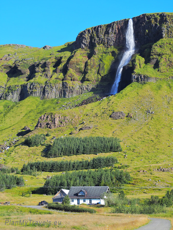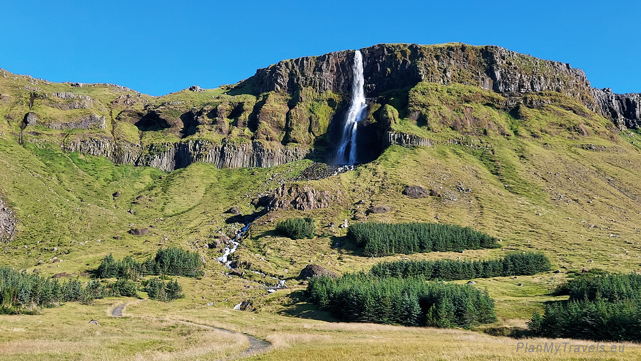 Rzeka Bjarnaá (Niedźwiedź) spada z bazaltowej góry o nazwie Mælifell o wysokości 566 m, tworząc ponad 80-cio metrowy wodospad. Wodospad podzielony jest na dwie części, rozdzielone półką skalną. Mniej więcej do wysokości tej półki można podejść ścieżką wytyczoną wzdłuż wodospadu. Z tego miejsca rozpościera się wspaniały widok na okolicę. Sam wodospad również robi wrażenie, a najbardziej chyba widok tego jak rzeka Bjarnaa – na końcu krętej drogi wpada wprost do oceanu.