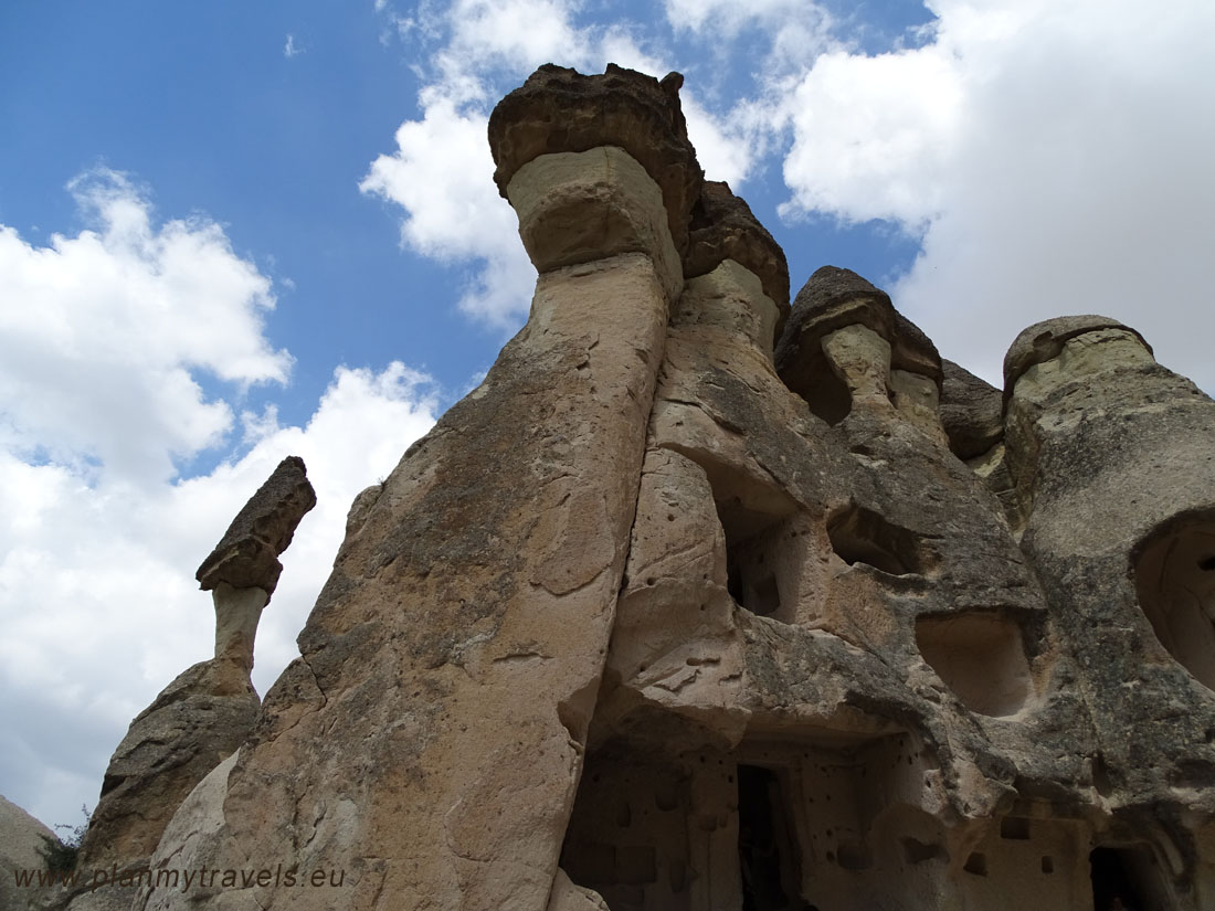 - Paşabağ fairy Chimnyes (nazywana również doliną mnichów „Valley of the Monks”) – to miejsce wyjątkowe również jak na Kapadocję. Znajdują się tutaj jedne z najbardziej efektownych bazaltowo-tufowych, strzelistych skalnych grzybków z podwójnymi, lub nawet potrójnymi czapami skalnymi (kapturkami).