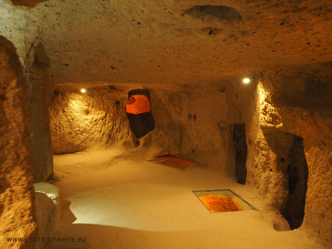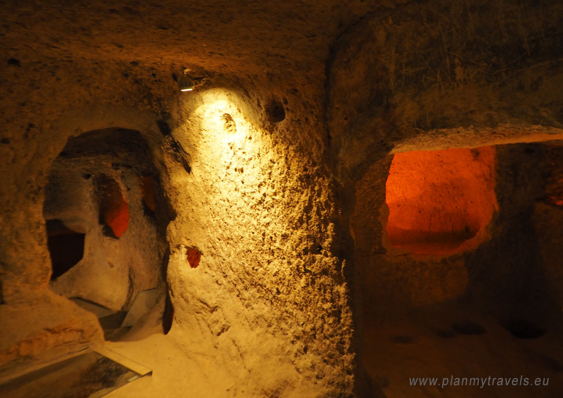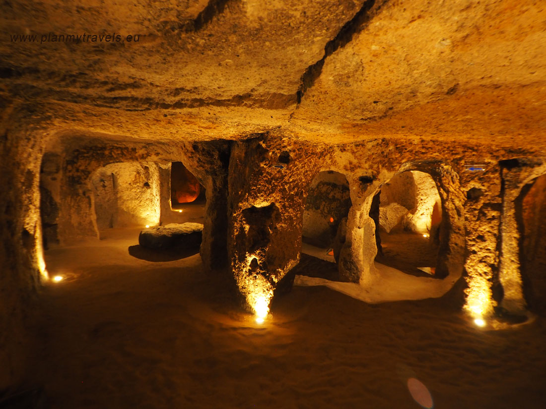 W całej Kapadocji doliczono się niemal 40 podziemnych miast, jednak tylko niektóre z nich zostały udostępnione dla zwiedzających. W dawnych czasach, w podziemnych miastach schronienia szukali chrześcijanie, prześladowani przez arabskich najeźdźców. Szacuje się, że w okresie V-X wiek, w osadach pod ziemią żyły dziesiątki tysięcy osób. Na odwiedzających to miejsce turystów czekają tu: wąskie labirynty, podziemne przejścia i kręte korytarze. Wciąż można tam zobaczyć szyby wentylacyjne, kominy i studnie, kaplice, magazyny żywności czy miejsca mielenia ziarna czy pędzenia wina. Do tej pory w niektórych z nich nadal mieszkają ludzie. Dzisiaj są to wersje bardziej uwspółcześnione, z wygodami XXI wieku (prąd, Internet, TV sat). Część z nich przerobiona jest na bazę noclegową dla turystów.