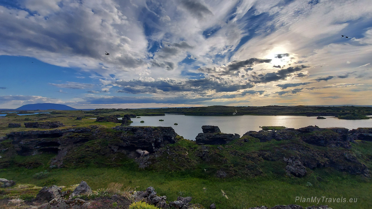 Kolejny przystanek jest przy jeziorze Myvatn, nazywanym również „jeziorem muszek”. Uwaga – bez specjalnej siatki na głowę, nie da się wysiąść z samochodu (zamknijcie okna!), bo muszki gryzą i są niezmiernie natrętne i wygłodniałe. Siatki ochronne na miejscu można kupić na stacji benzynowej i/ lub w sklepach z pamiątkami.