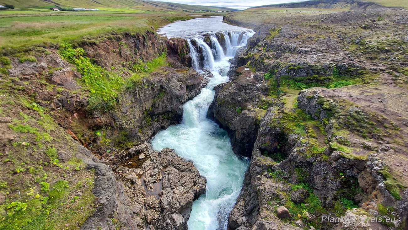 Dalej jedziemy obejrzeć kolejny cud natury: Kolugljufur Canyon. Kanion ma ok. 1 km długości, a z jego ścian spadają kaskady wody. Warto przejść się całą trasą. Jest to wspaniałe miejsce! ♥ Kanion ma ok. 25 metrów wysokości, a na jego dnie wije się rwąca rzeka. Na miejscu jest kilka tarasów widokowych i ławeczki, więc można tam spędzić miło czas.