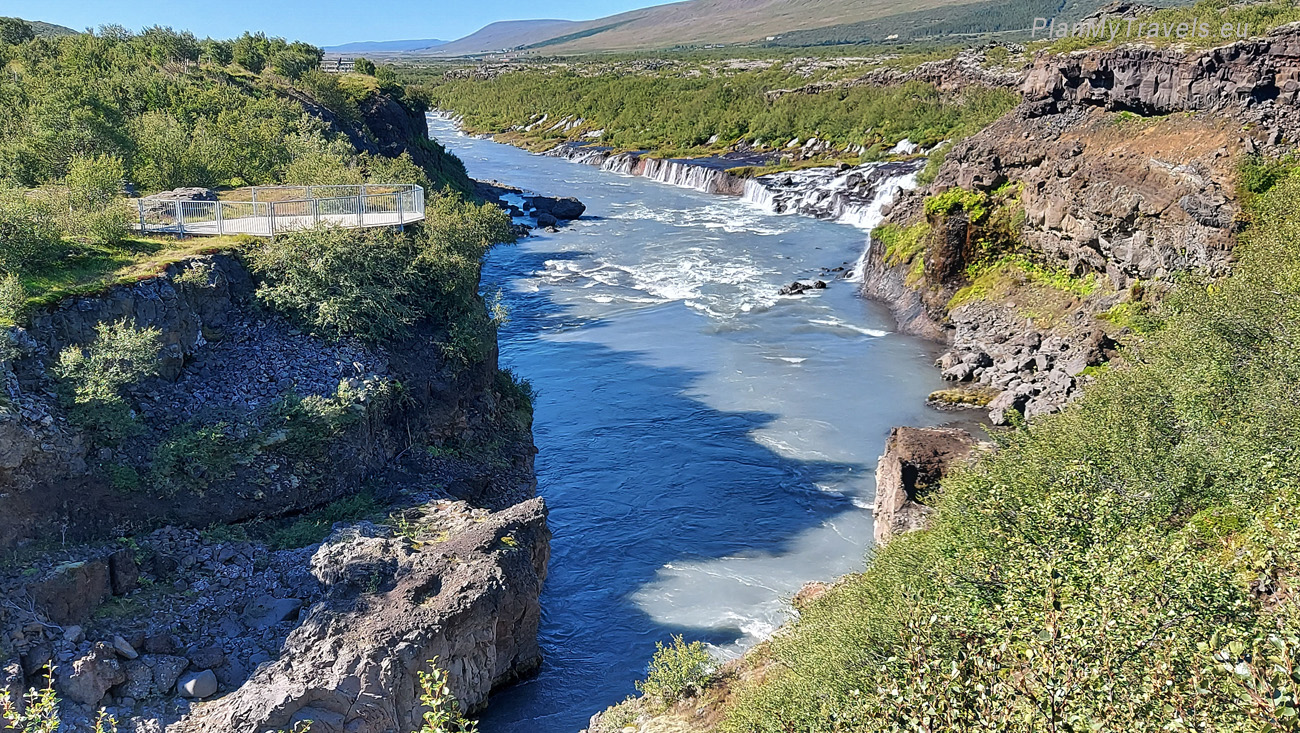 Opuszczamy półwysep Snaefellsnes i jadąc drogą krajową 50, mijamy Borgarness. Jedziemy drogą 518, która prowadzi do wodospadów lawowych – Hraunfossar. To niezwykły cud natury!♥ Jest to seria wodospadów, wypływająca ze zbocza doliny rzeki Hvítá w postaci szerokich na kilkaset metrów kaskad. W górze rzeki znajduje się również wodospad Barnafoss. To wspaniałe miejsce, wokół jest kilka tarasów widokowych po obu stronach kanionu. Naprawdę warto to zobaczyć.