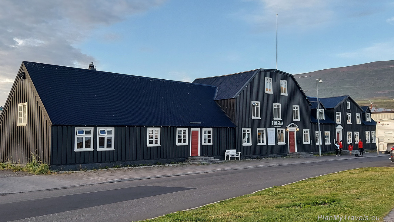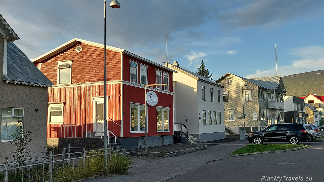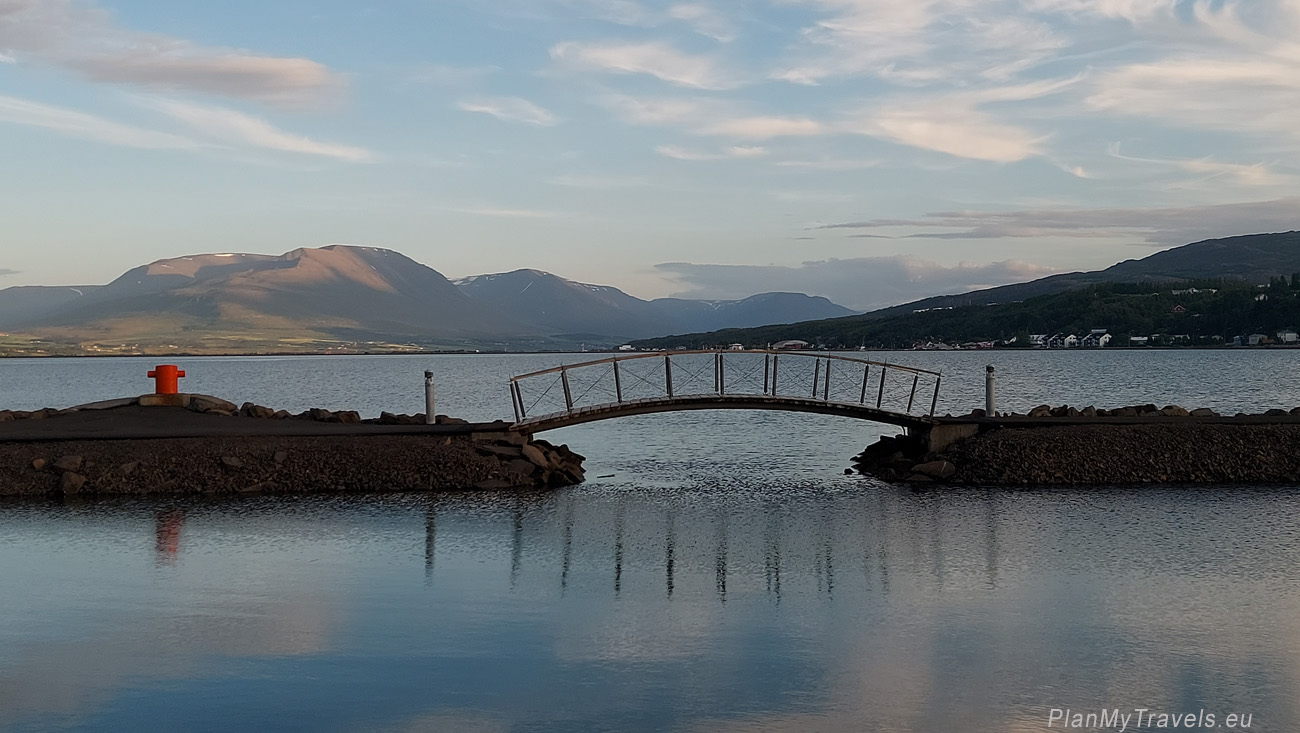 Znajdziecie tam również ciekawe rzeźby. Jedna z nich w kształcie statku, o nazwie Sigling (Żeglowanie) jest autorstwa islandskiego artysty Jona Gunnara Arnansona, który jest również twórcą rzeźby Sun Voyager w Reykjaviku. Spacer wzdłuż fiordu szczególnie polecam późnym popołudniem, kiedy kolor nieba staje się granatowy, a kolor wody odbija czerwień zachodzącego słońca.