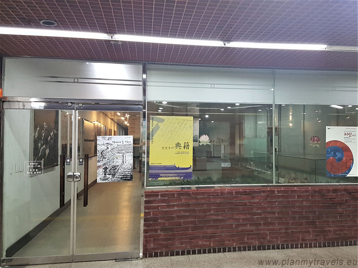Na stacji metra Beomeosa Station (przy wyjściu nr 6), znajduje się mała wystawa poświęcona historii świątyni. Wystawa czynna jest od 9.00 do 17.00, wstęp wolny. Warto tam wejść, gdyż znajduje się tam m.in. makieta świątyni. Są również kopie lektyk królewskich, miniaturowa armia koreańska, jest również dużo historii opowiedzianej za pomocą pędzla i pięknych malowideł na jedwabnych zwojach. Wystarczy wam na to miejsce 10 minut, ale warto je odwiedzić, żeby poszerzyć horyzonty wiedzowe.