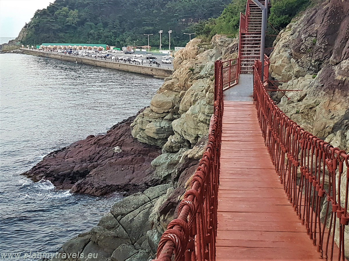Ścieżka ta, została otwarta w roku 2015 i jest najdłuższą i pierwszą w kraju o półokrągłych kształtach. Mówi się również, że kształt ścieżki przypomina ogon smoka. Ścieżka zawieszona jest nad taflą morza, a niektóre jej fragmenty mają podłogę wyłożoną taflami szkła. Bardzo przyjemne miejsce. Po drodze mija się pomnik syrenki i rybaka. Na końcu ścieżki, tuż po zejściu na ląd – znajduje się wejście do kolejki linowej.