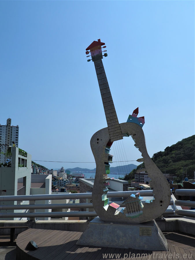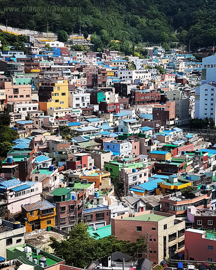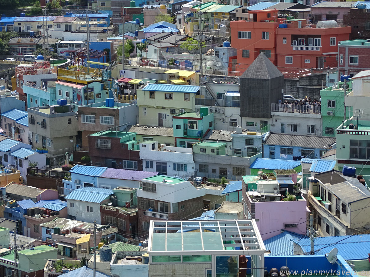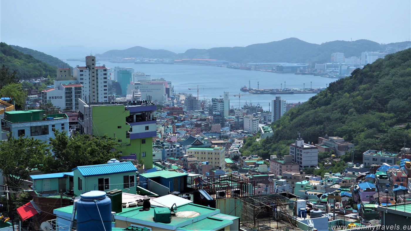 Z Gamcheon rozpościera się majestatyczny widok na zatokę, port i Busan. Domy, pomalowane na pastelowe kolory są tak umieszczone na zboczu wzgórza, że nikt nikomu nie zasłania widoku na zatokę.