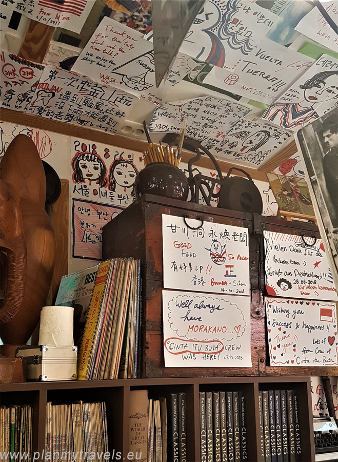 Kawiarnia Meolakano to miejsce, które warto odwiedzić. Czas zatrzymał się tu kilkanaście lat temu. Wokół kawiarni rozstawiona jest pokaźna kolekcja starych winylowych płyt oraz przedmiotów użytku codziennego, które dzisiaj można zobaczyć jedynie w muzeum lub w domach starszych osób. Wewnątrz kawiarni, na ścianach i na suficie znajdują się kartki A-4 z pozdrowieniami pozostawionymi przez innych turystów. Właściciel na pewno zapyta was skąd jesteście i znajdzie pozdrowienia zostawione przez innych gości z Polski. Kto wie, może znajdziecie tam również te zostawione przez nas? 😊.