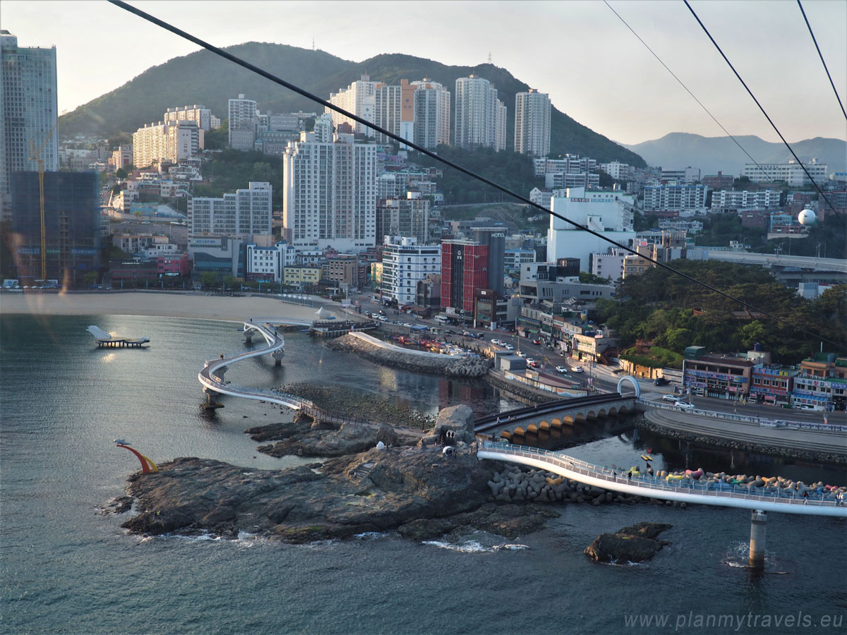 Cena: 13 000 WON w jedną stronę (ok. 44 zł). Uważam jednak, że warto wykupić bilet tylko w jedną stronę, aby w drogę powrotną wrócić przez park Amnam, o którym napiszę poniżej. Więcej informacji na temat kolejki linowej na stronie busanaircruise.co.kr