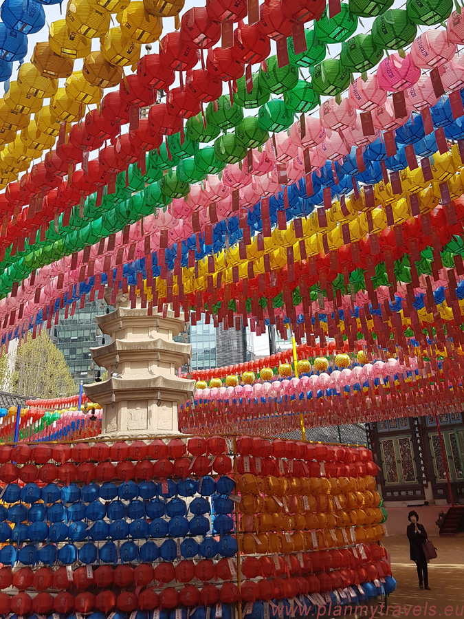 Z tego powodu, na moich zdjęciach ze wszystkich koreańskich świątyń widać przeważnie kolorowe lampiony i niemal nie widać zabudowań ani pomników. Mieliśmy szczęście, bo tak udekorowane świątynie są tylko przez kilka dni w roku. Widok rozwieszonych tysięcy lampionów robi niesamowite wrażenie, a kiedy zostają one włączone po zmroku – zaczyna się magia…
