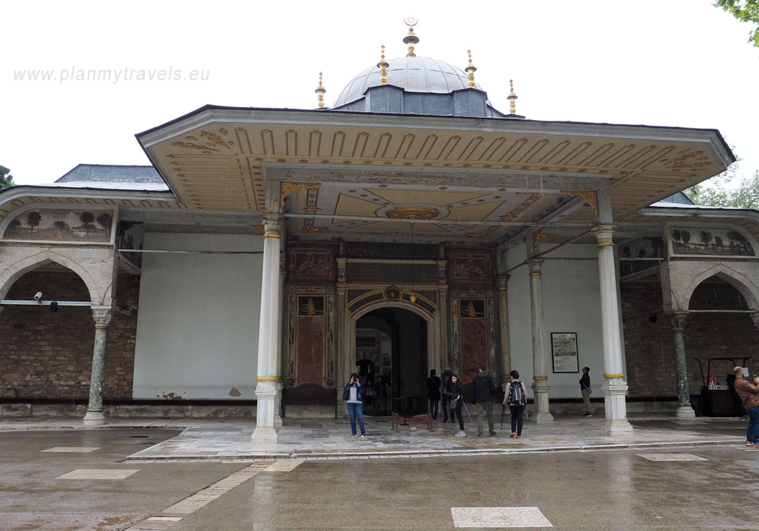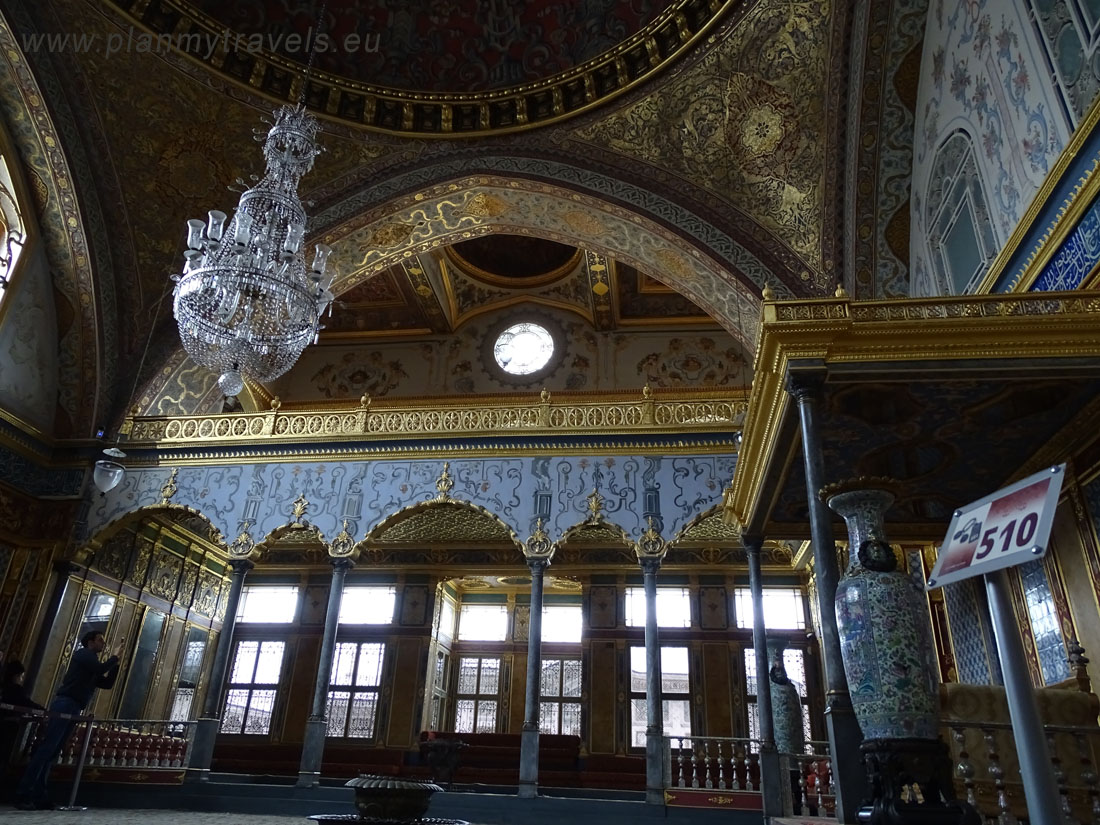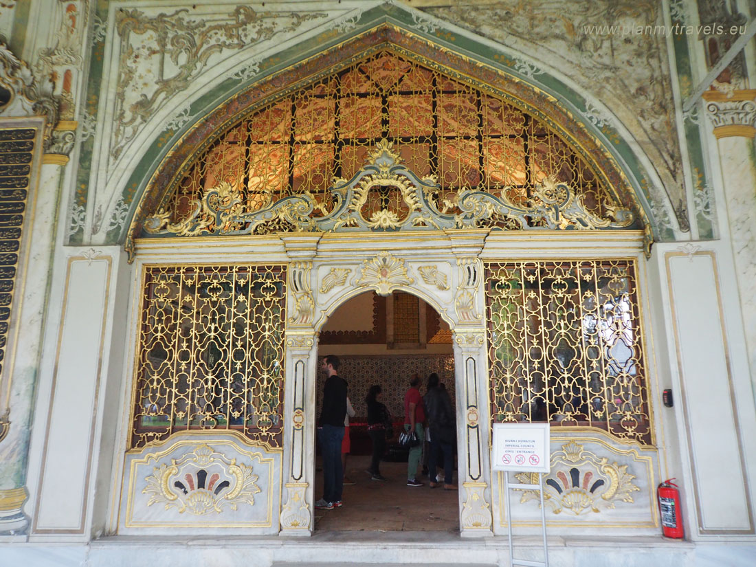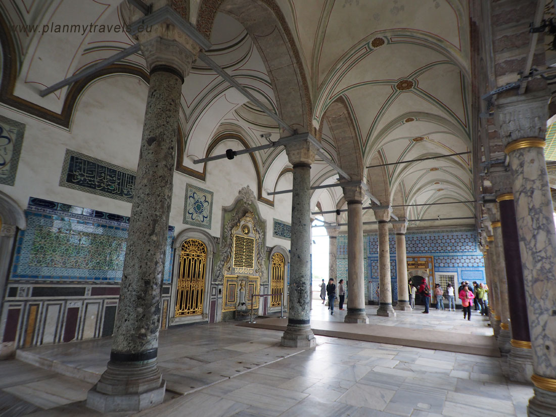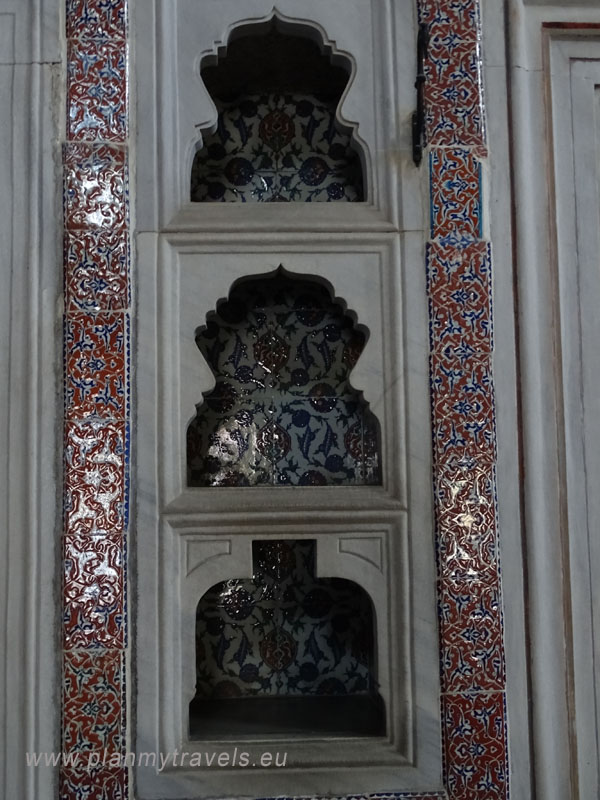 - w haremie, między innymi można obejrzeć komnatę sułtańską czy apartamenty królowej matki. Pomimo dodatkowej opłaty jaką należy uiścić za wejście na teren haremu, warto zobaczyć jak to miejsce kiedyś ociekało przepychem. Znajduje się tu wiele malutkich pokoików, ażurowe przesłony, czy witrażowe okna. Warto również przejść się „Złotą Dróżką”, która łączyła najważniejsze pomieszczenia haremu.