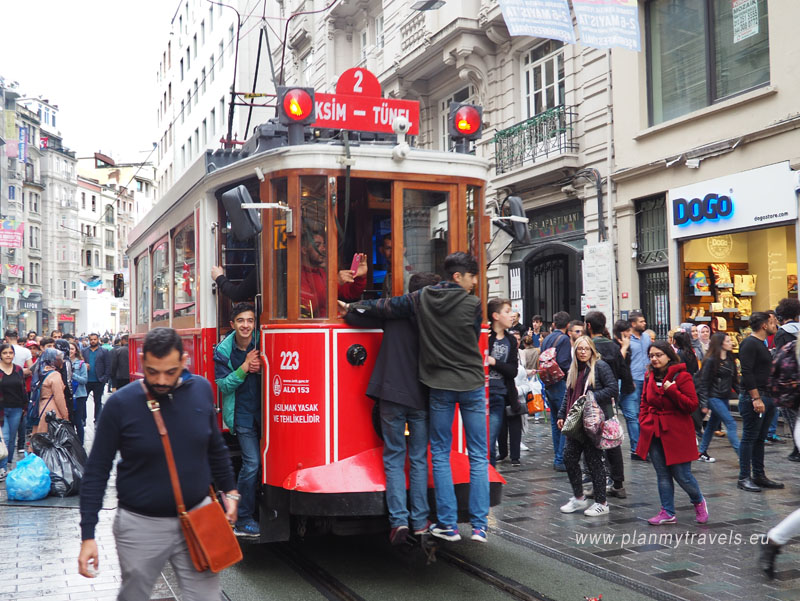 Istiklal Caddesi, czyli „Aleja Niepodległości”, to wspaniała arteria handlowa położona pomiędzy stacją kolejki Tünel a placem Taksim, na terenie dzielnicy Beyoglu. W XIX wieku, była sercem i główną ulicą handlową miasta. Od początku lat 90-tych, XX wieku, została wyłączona z ruchu kołowego. Jedynym środkiem transportu jest obecnie zabytkowy tramwaj (o którym pisałam w poście „Stambuł – jak poruszać się po mieście„).