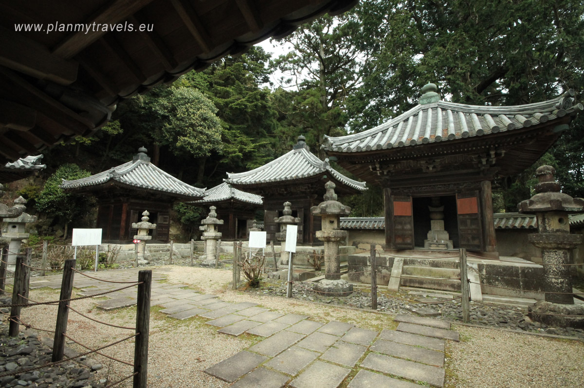 Kolejne pięć minut spacerem wzdłuż gęstych, leśnych ścieżek prowadzi do trzech ogromnych drewnianych sal świątynnych, zwanych Mitsunodo. Wszystkie te budynki zostały wpisane na listę „Ważnych Skarbów Kultury”.