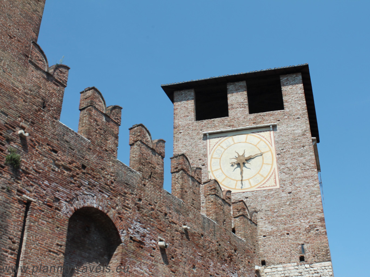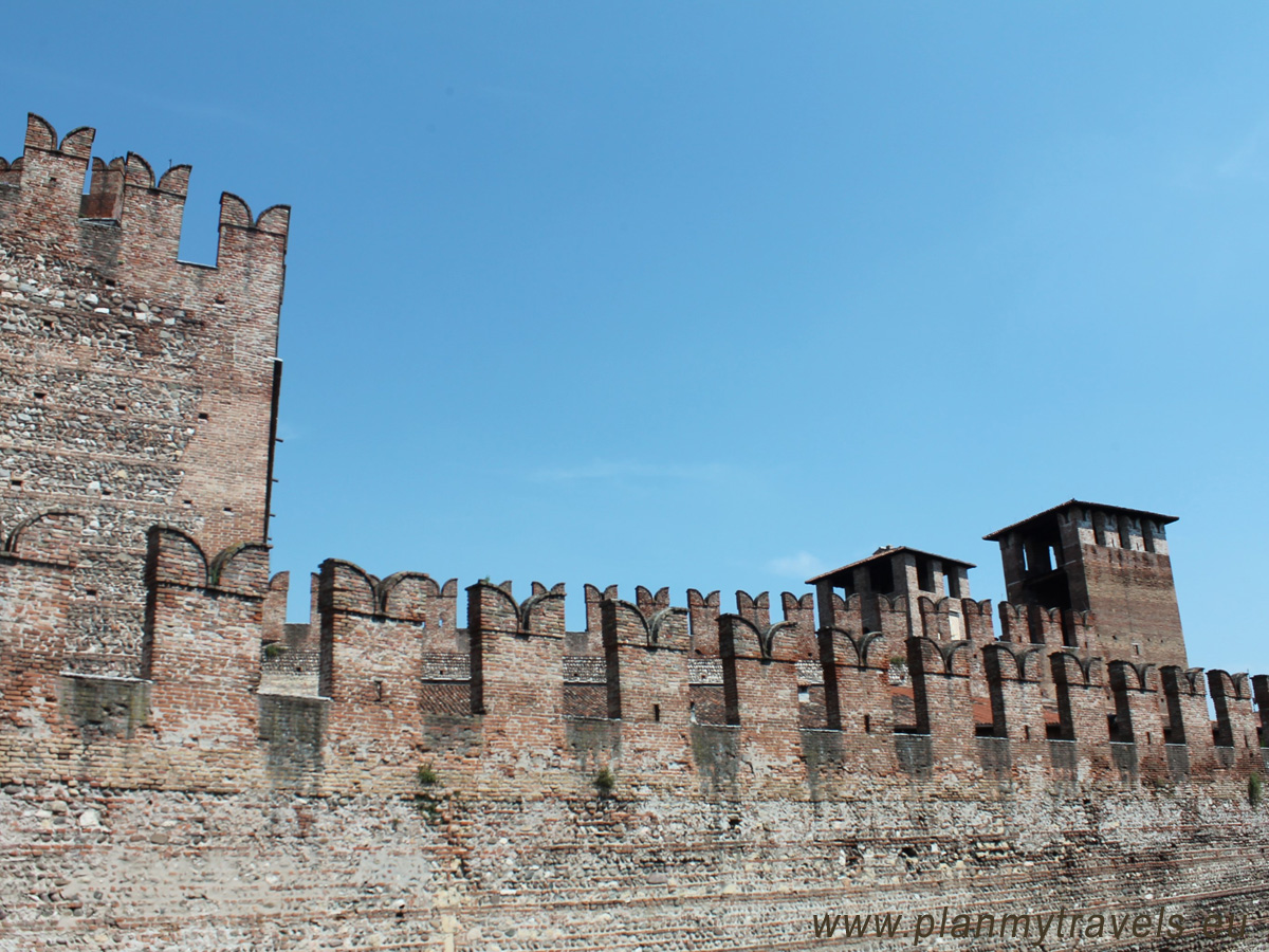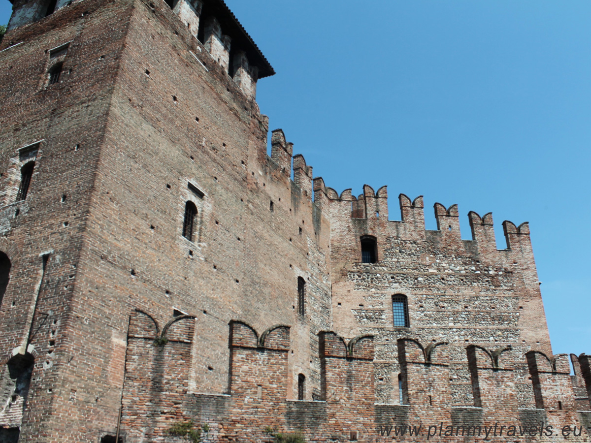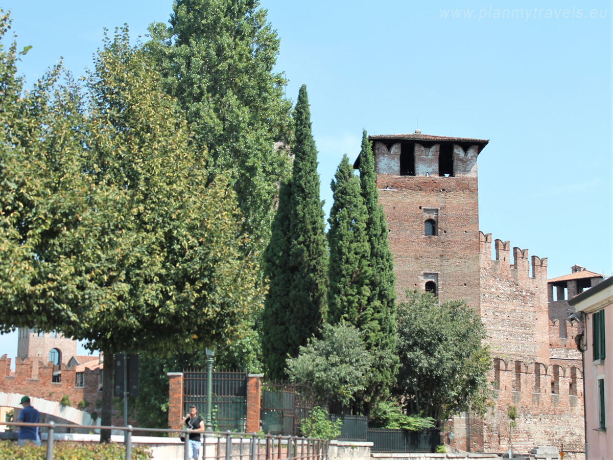 Castelvecchio to gotycki zamek pochodzący z roku 1354. Projekt zamku został opracowany przez rodzinę della Scala. Poza funkcją mieszkalną, zamek miał również być twierdzą obronną chroniącą rodzinę Scala zarówno przed najazdami zewnętrznymi, jak i popularnym buntem. Teren wokół zamku umożliwiał szybką i łatwą ucieczkę z miasta: po przejściu przez ufortyfikowany most, dostępny tylko dla szlacheckiej rodziny, drogą na północ wzdłuż doliny Adige.