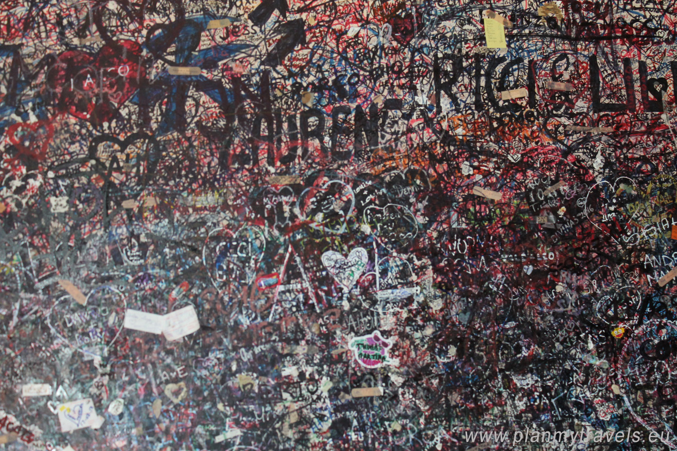 Jest jeszcze krata z przypiętymi kłódkami w kształcie serca, które można kupić na miejscu lub w pobliskich sklepach z pamiątkami i zostawić podpisane jako dowód „wiecznej miłości”.