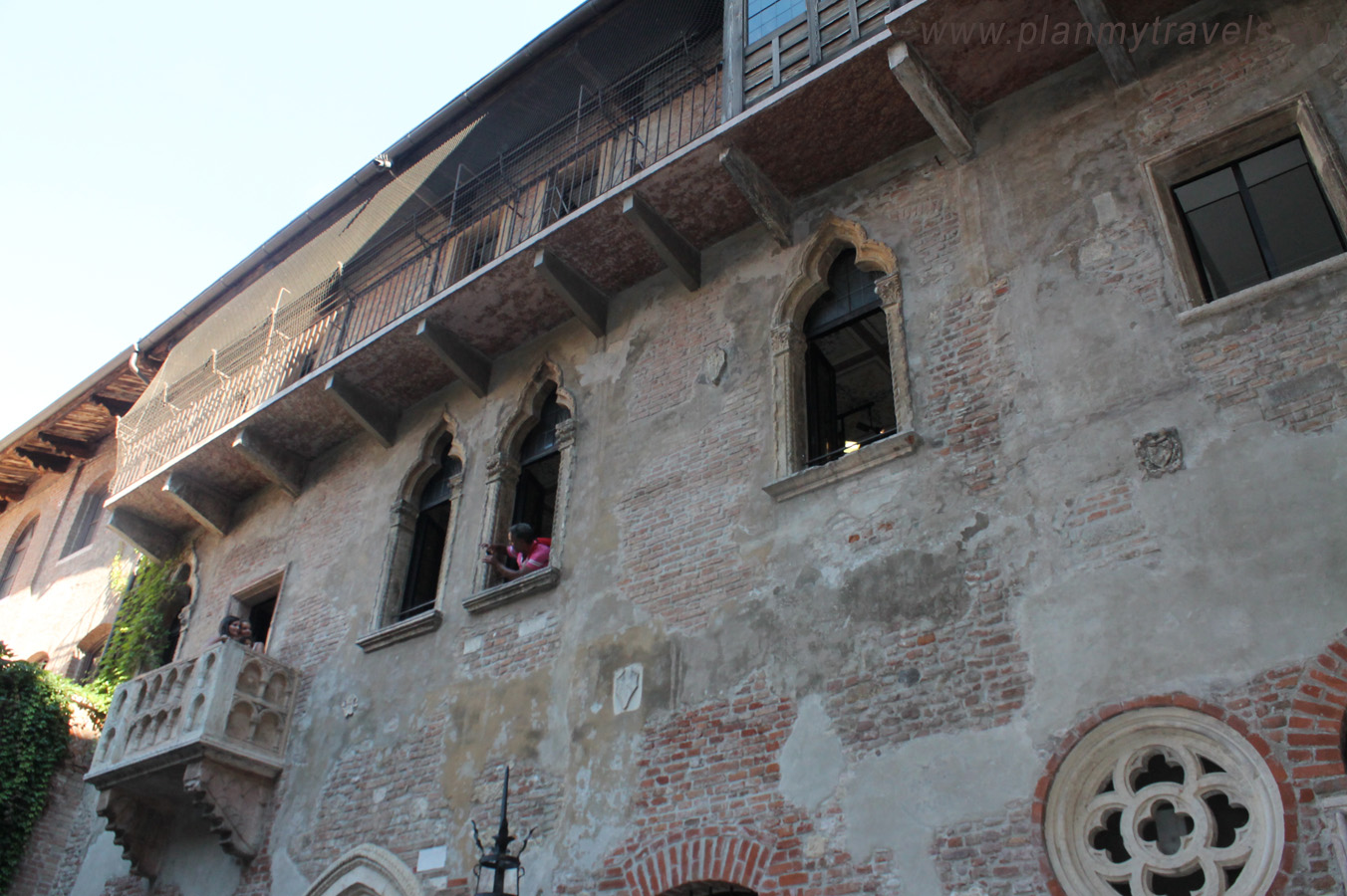 Dzisiaj – żeby zobaczyć słynny balkon, trzeba wejść na wewnętrzny dziedziniec budynku. Najpierw trzeba jednak przecisnąć się przez wąskie gardło – czyli bramę wejściową. Jest to ciemne i brudne miejsce, całe (aż po sufit) „zabazgrane” napisami i serduszkami pozostawianymi w tym miejscu przez zakochane pary.