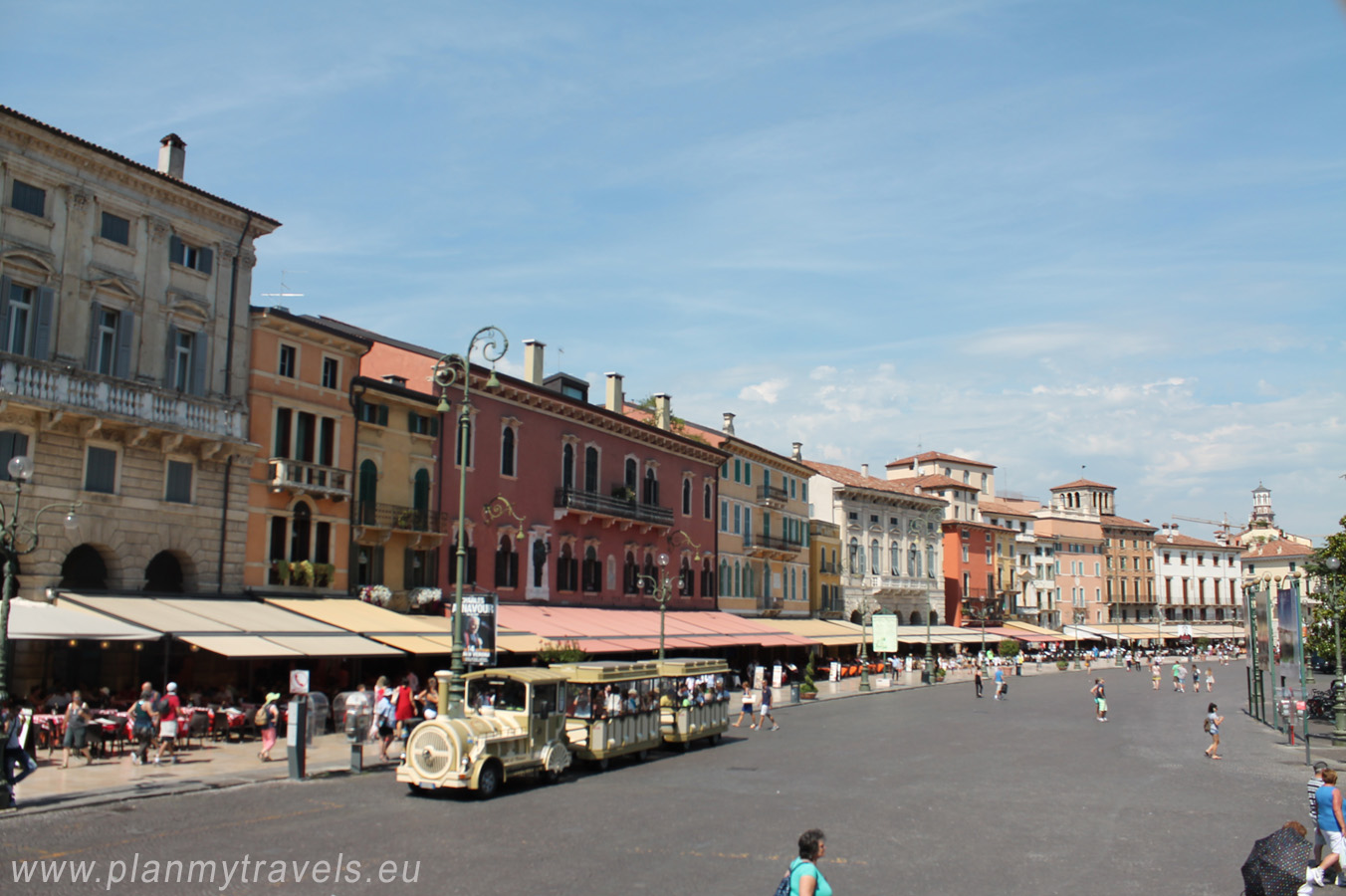 Plac Bra jest bez wątpienia największym placem w Weronie. Niektóre źródła sugerują nawet, że być może jest również największym placem w całych Włoszech. Znajdują się na nim trzy charakterystyczne miejsca:
