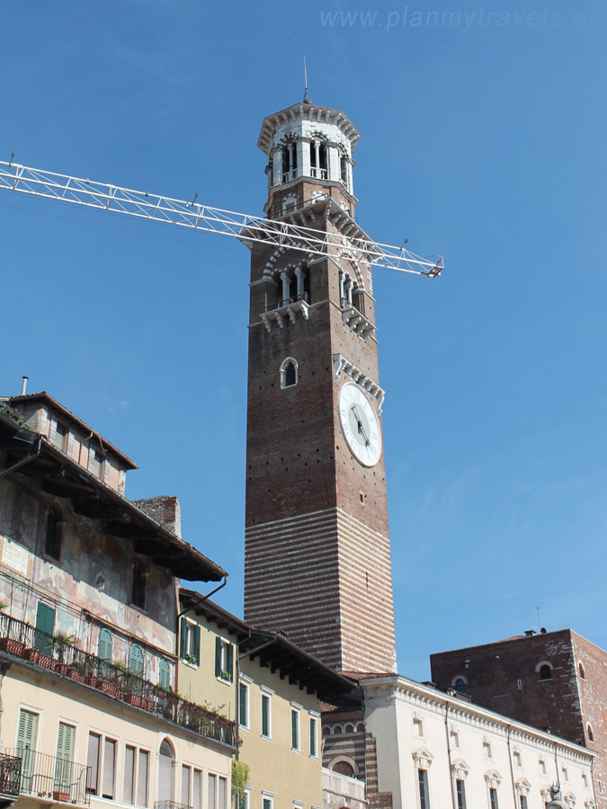 - wieża Lamberti (Torre dei Lamberti), w której kiedyś znajdował się średniowieczny ratusz. Wieża ma 84 metry wysokości i wybudowana została w roku 1172. W roku 1403 na szczycie wieży dobudowano latarnię. Na jednej ze ścian wieży umieszczony jest zegar, który ma ponad 250 lat (1779). Na wieży znajdują się również dwa dzwony: mniejszy – Marangona sygnalizujący pożary oraz poszczególne godziny oraz większy – Rengo, który służył do wzywania ludności do broni lub wzywał radę miasta na narady.